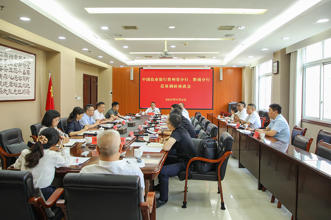 9月4日,由中国农业银行贵州省分行、黔南分行相关负责人及业务骨干组成的调研组到福泉市开展调研,双方就加强政银合作、实现共同发展进行座谈交流。州政协党组成员、市委书记吴义宁,市委副书记、市长夏世飞,市委常委、副市长兰娟及相关单位负责人参加座谈。
