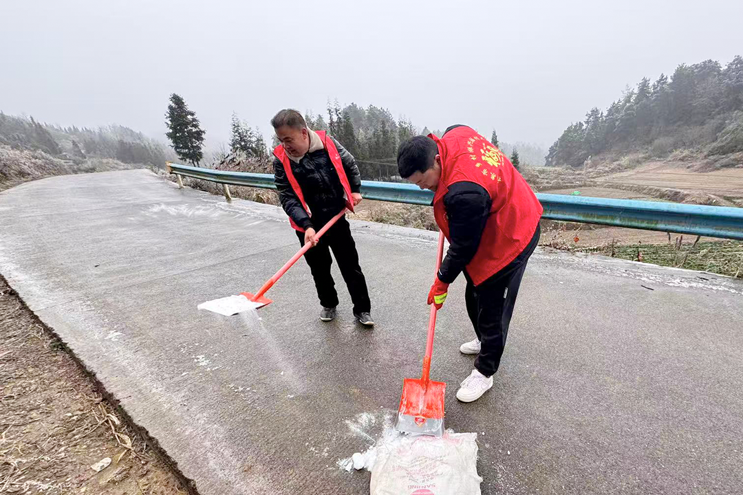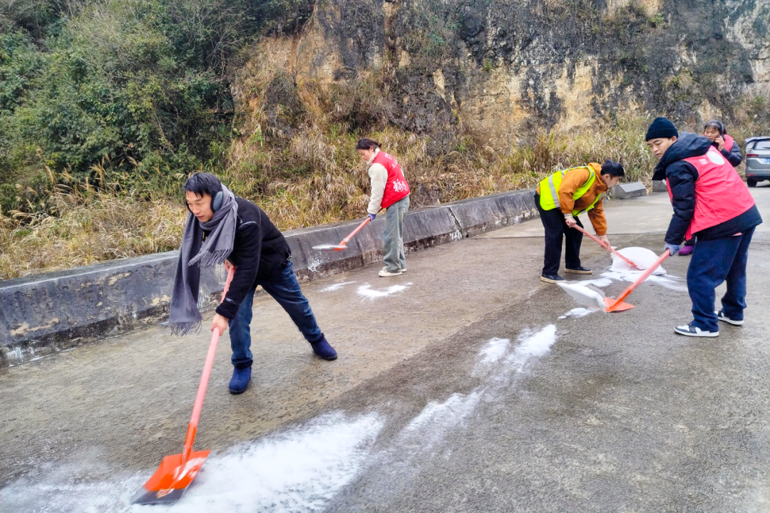 道坪镇组织对辖区道路开展撒盐除冰工作