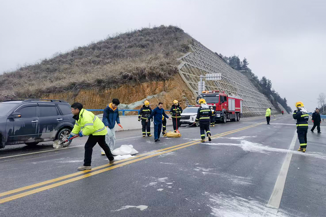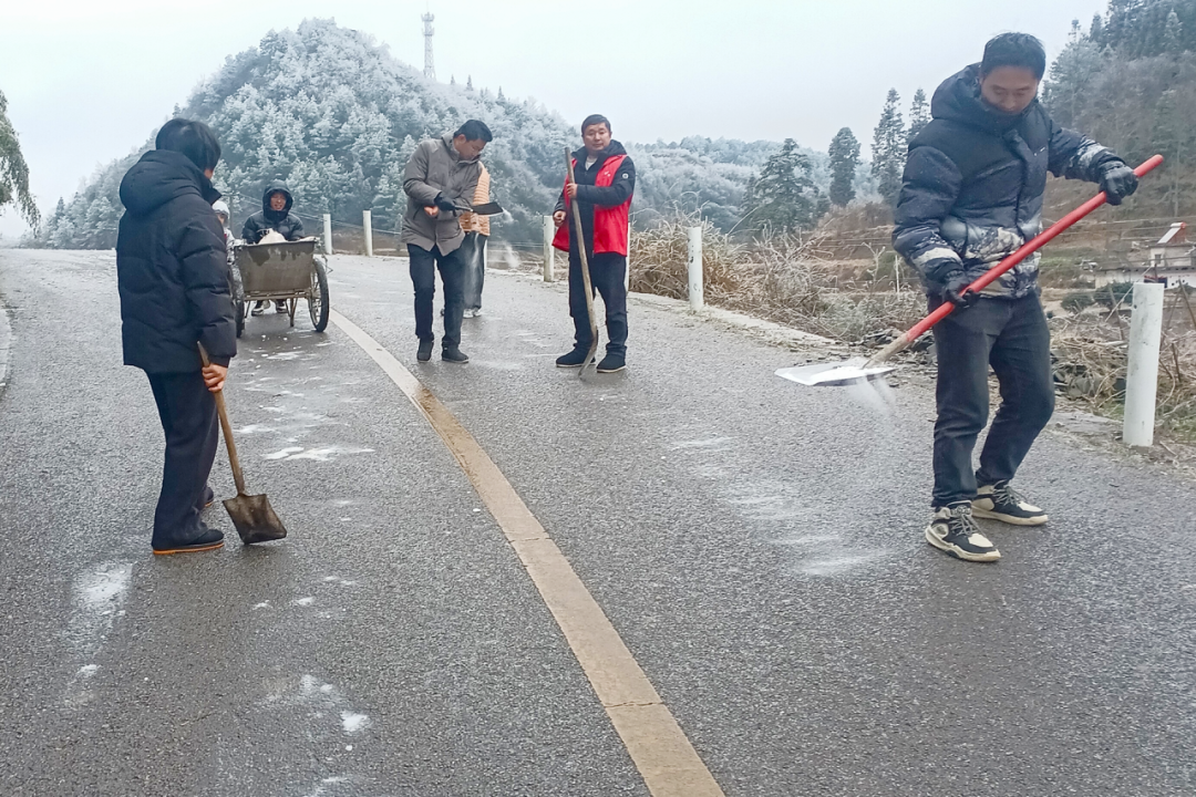 1月21日至22日,福泉气温持续走低,低温天气导致辖区部分道路出现结冰现象,给群众出行带来安全隐患。为保障道路通行安全顺畅,各乡镇(街道)、村(社区)持续开展撒盐除冰作业,工作人员坚守一线、及时行动,对结冰路段进行全面清理,全力消除道路安全风险,切实守护群众出行平安。