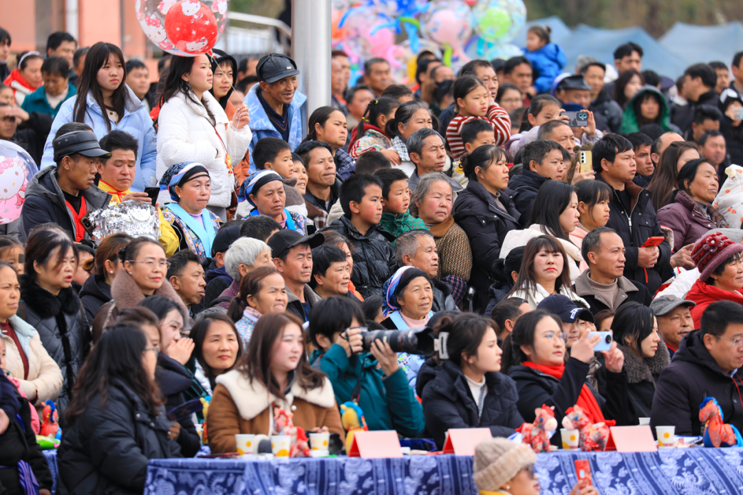夜幕降临,广场上舞台灯光亮起,音乐、舞蹈、非遗、篝火……旋律绕着炊烟,火光映着笑脸,和着山间的晚风,传统与现代在这片土地上交融,共同奏响马年新春的序曲。